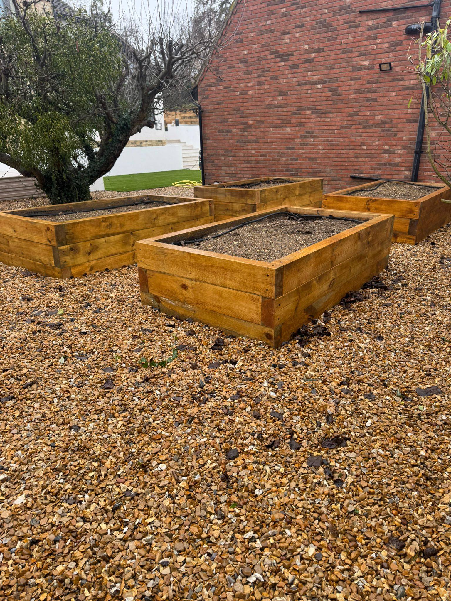 I had my garden transformed from a jungle to a beautiful outdoor space where I can relax. I chose sleeper beds, a summerhouse, and a BBQ area. The landscaping was done with high-quality grass seed, which grew well and evenly. Raised beds were filled with different shrubs to finish the look. Rob and his team were very professional, always on time, and kept me updated throughout the project. I highly recommend them, and the materials used were of high quality.